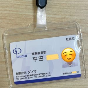 名前・写真・登録№を記載しており、社員であることをお客様やお取引先様により分かりやすくお伝えできるようになっています。